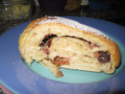 It was basically a brioche dough, covered with meringue and then the filling. Roll up, slash and bake.